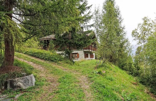 The chalet boasts a private property area complete with a natural garden and patio. The location offers a quiet, sunny, and elevated position, providing an ideal setting for outdoor enjoyment. The property is accessible via a steep, narrow motor access, though winter access is limited to 50 meters due to mountain road conditions.