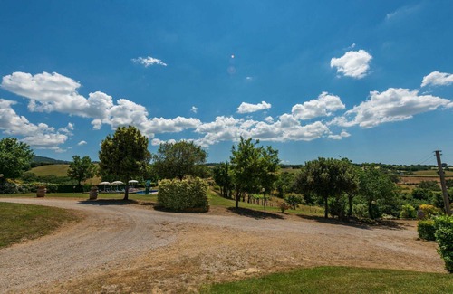 Colle Mezzagno is accessible via motor access, which involves traveling 1.3 km via an unmade road. There's a roofed parking area on the premises for guests' convenience. The property is located 11 km from the supermarket, 18 km from the Grosseto railway station, and 30 km from the sandy beach. Additionally, the marina is 40 km away, and there are several hiking paths and mountain bike trails within 5 km of the vacation rental.