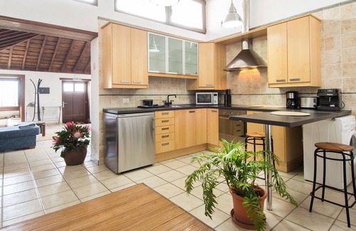 The original building was built 130 years ago in traditional style with thick stone walls and a tea wood roof. The division of the lower building decades ago, it was subsequently expanded to two independent apartments, taking care to maintain the character of the typical Canary architectural style. The apartment consists of 2 floors, spacious and modern designed with large and bright living and dining area, fully equipped kitchen, shower room, bedroom with balcony and sea view.