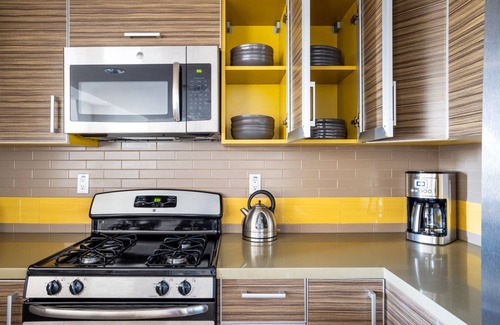 This furnished apartment is located in Melrose, an upscale neighborhood in the heart of Los Angeles. The area is home to swanky hotels and several theaters where you can catch live music or comedy. There is an incredible variety of restaurants along Melrose Avenue, as well as boutique shopping and an occasional celebrity sighting to boot. Melrose is the setting for the MAK Center for Art and Architecture at the Schindler House, a unique performance space set in a former home. Although most Melrose residents own cars, the neighborhood itself is walkable, and there is bus service available.