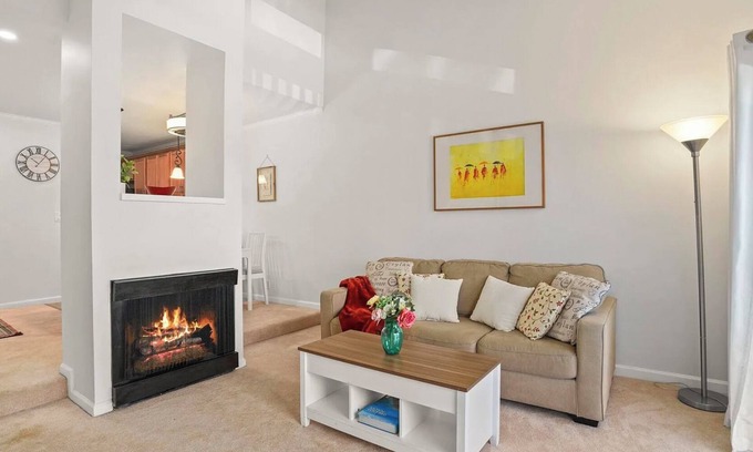 Superbly centrally-located 1bed-1bath apartment, beautifully renovated and fully furnished. Lovely large bright living room with vaulted ceilings opening onto balcony, complete with 50” TV, AC, fireplace and a sleeper sofa for guests. Kitchen with all new appliances, large counter into cozy dining area with extendable dining table. Updated bathroom with beautiful tiling design. This space features a large back bedroom with private window looking into nature, large mirrored closet doors, and ceiling fan. Study desk and chair can be provided. You’ll find all the essentials like a hair dryer and iron to make your stay fabulous. Laundromat on facilities in close proximity next to swimming pool. Individual parking space is only 5 car spots from apartment entry, making grocery runs and transporting luggage easy. Only 10 minutes to BART, John Muir Hospital, Kaiser Permanente Hospital, corporate town center, Broadway Plaza shops and restaurants, grocery stores like Safeway, Whole Foods, Trader Joe’s Target and farmer’s market, Heather Farm and Iron Horse Trail for outdoor activities. NOTE: Minimum 7 night stay. Perfect place for Professionals, Travelling Nurses, Consultants, Graduate Students, needing lodging during House Moves or Renovations. Sorry, NO Pets (cream carpet) and NO Smoking. We look forward to welcoming you to The Reading Loft. We will be available to answer any questions while you stay at our place.