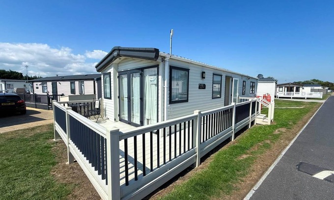 Lovely caravan with decking at Suffolk Sands Holiday Park ref 45017B | House in Felixstowe
