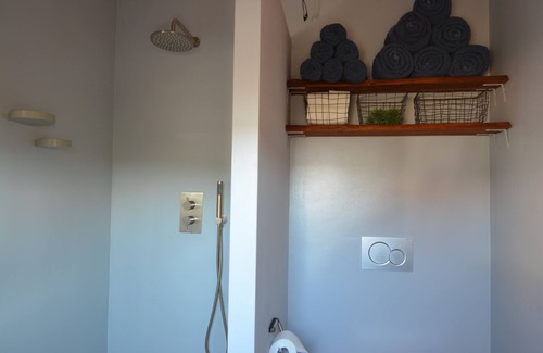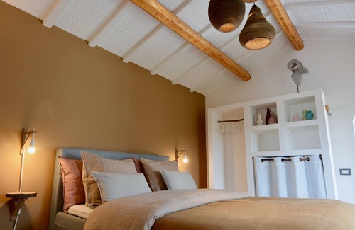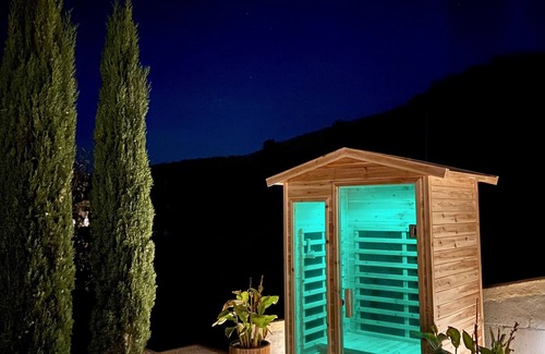 The Casetta & Wellness is a small luxury house of approximately 35 m2 with 3 rooms; a bathroom with toilet and rain shower, a fully equipped kitchen with wood stove and a studio with queen-size box spring and a small dining area (see photos). Air conditioning and heating are available. A barbecue on the outdoor terrace. A Wellness terrace with a sauna, cold water baths and a wood-fired hot tub. Also great for cooling off in the summer! These can be used all year round. Your dog (no other pets) is welcome, but please let us know in advance. You rent a holiday home from us, which means that you are responsible for all utilities and foodstuffs yourself. We offer breakfast and dinners at an additional cost. This can be arranged on site. The saltwater pool and sunbeds are accessible to all guests. We are open all year round.