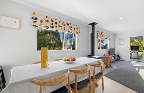 This Bannockburn holiday home has open plan living including a wood burner and heat pump for cosy winter escapes. For summer stays, the generous grounds are perfect for family games in the sun, or sitting back and admiring the incredible scenery. With its 3 bedrooms ( 2 queens and 1 king single), this family friendly home offers accommodation for up to 5 guests.