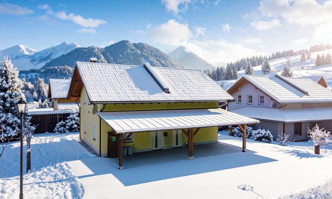 This modern semi-detached chalet with lovely garden is located a short distance from the ski lift and the slopes of the Kötschach-Mauthen-Vorhegg ski area, but the top ski area Nassfeld and the Weissensee can also be easily reached by car from here. In summer, this is the region for beautiful hiking trails, near the border triangle Austria-Italy-Slovenia. The beautifully landscaped garden with lovely covered terrace lets you enjoy the peace and quiet of this area