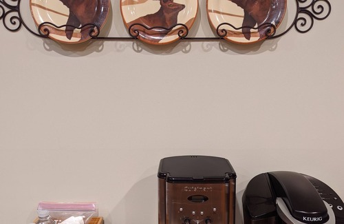 -Full kitchen equipped dishwasher, microwave, pots and pans, electric kettle, toaster oven, blender, keurig machine, and coffee machine.