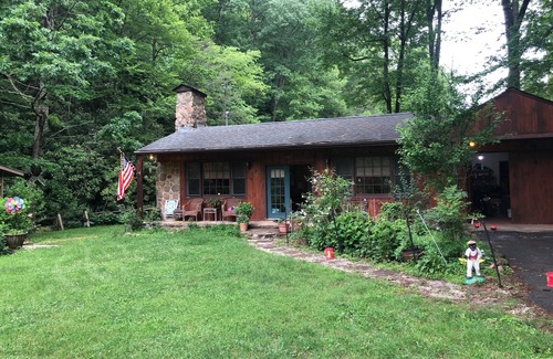 There's nothing like relaxing on the porch swing at this quaint 2-bedroom cottage in Sugar Grove, Virginia, (near Wytheville) listening to the stream rush over the rocks. Watch our resident ducks, and then take a dip in the private swimming hole. Kids (and kids at heart) love the caboose in the yard, complete with it's own half bath. There's a big lawn for playing, great hikes nearby, plenty of fly fishing in the area, and the cottage is in walking distance to the beautiful Grayson Highlands Horse trail. Good WiFi, Direct TV (or bring your own Fire Stick), and cell phones will work if you connect them through the WiFi. The kitchen has everything you need, and a washer and dryer are available. Great spot for hunters, or for anyone that just wants to get away for a while. Borders Jefferson National forest.