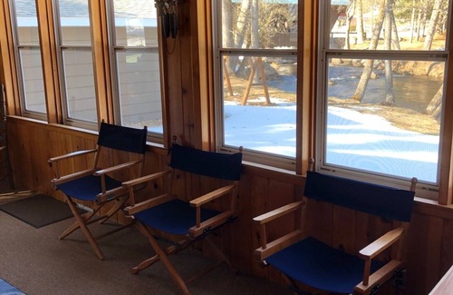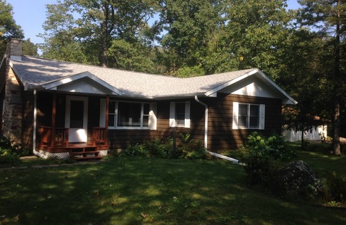 Whether you desire a quiet retreat or days filled with activity, this setting fits the bill. Resting next to the crystal clean Pine River, you are minutes from trout fishing, hunting, tubing, boating, canoeing, cycling, hiking and swimming. Winter activities include downhill skiing, cross country skiing, tubing, ice fishing and snow shoeing. The cottage comes equipped with air conditioning, a screened in porch, two modern bathrooms and a washer and dryer. There are four single beds in the guest bedroom. The master bedroom contains a queen sized bed. The porch holds a hide-a-bed couch. It is only a minute's walk to Saxeville or the Covered Bridge Park. It is a magical setting.