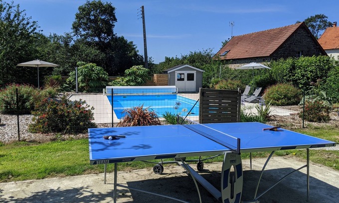 Lovely cottage sleeps 4 with shared pool & lawn tennis court, dogs welcome is located in Vesly. Lovely cottage sleeps 4 with shared pool & lawn tennis court, dogs welcome provides accommodation, featuring Pet Friendly, TV, Balcony/Terrace, among other amenities. This Cottage features Pet Friendly, TV, Balcony/Terrace, to make your stay a comfortable one.