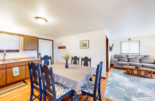 When you find a bit of downtime, head inside and cozy up in the living area to stream favorite movies on the flatscreen TV or simply chat with loved ones over a favorite cocktail. Board games are provided for even more fun, and the chef of the group will love taking advantage of the well-equipped kitchen to prepare tasty recipes with ease. And, there will be no need to be disconnected during your stay with a desk and high-speed WiFi ready to facilitate working from home or sharing memories on social media.