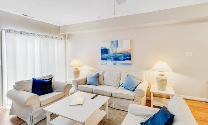 Enjoy a convenient location and great amenities when you choose this vibrant dog-friendly home in Scarborough Village. Walk or bike to Rehoboth Avenue shops, restaurants, and nightlife, as well as the boardwalk and beach, where you and your family can fill your day with sunshine, splash in the ocean, or read a good book under the shade of an umbrella. Also within walking distance are playgrounds, tennis and pickleball courts, a farmer's market, and coffee shops. Because this home is a part of the Scarborough Village development, guests can also enjoy the convenience of a quiet neighborhood amidst all the happenings in town.