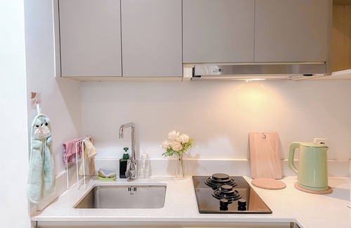 This full AC 1 Bedroom + 1 Living Room apt provides a queen bed, a single bed & a sofa bed. Btw, sofa is cute, but not that comfy. ごめん~ 😅🙏💖