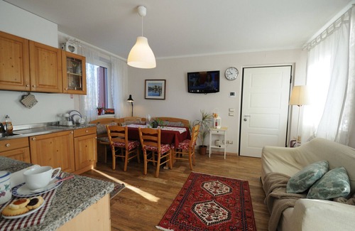 The flat consists of a bedroom for two people, with a small terrace overlooking Feltre Castle and the mountains, bathroom with shower, living/dining area with sofa bed for one person. Free wifi. Free private parking outside. The area is very convenient for reaching all the main destinations in the city: historic centre, university campus, ice rink, hospital and is well served by public transport. Less than 100 metres away is the Prix supermarket and a five-minute walk will take you to the largest supermarket, food and non-food, in Feltre; neighbourhood shops are also just a few minutes away.