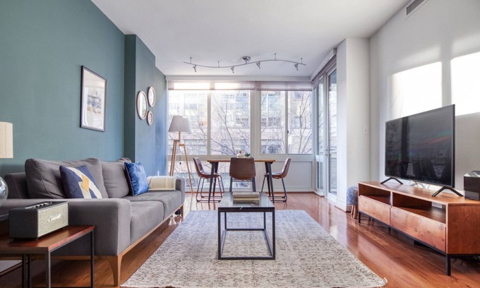 This Blueground apartment has flexible lease options, allowing you to book it for one month, a year, or more.