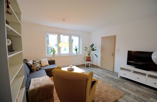 The apartment is located on the ground floor. The apartment includes a romantically decorated bedroom that invites you to dream and relax. A lovingly furnished living room with TV and a sofa bed with an additional sleeping options. The dining room offers enough space for 2-4 people and another sleeping place for children / teens. The vollausgstattete kitchen offers while on holiday with everything you need (fridge, freezer, oven, dishwasher, microwave, coffee maker, toaster, kettle). The apartment has a small terrace that invites particularly in the summer months, enjoy barbecues.