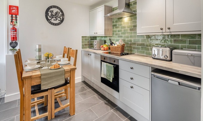 Shower Room: Cubicle Shower, Heated Towel Rail, Toilet. Oil central heating, electricity, bed linen, towels and Wi-Fi included. Welcome pack. External utility room with freezer and washing machine.. Rear garden with garden furniture and BBQ. Private parking for 2 cars. No smoking.. Joppa Uchaf has been renovated to a high standard in 2022, enjoys walks straight from the front door, and is just 4 miles from the fabulous sandy beach at Llanrhystud. Semi-detached, it comprises ground floor accommodation with open plan living/dining room, a kitchen, a double bedroom, bunk bedroom and a shower room. A garden to the rear is laid to lawn and has garden furniture.