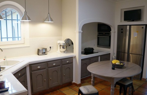Stay in this attractive villa with a great location and various facilities that make life easier and more fun. It has its own swimming pool and you can fully enjoy unforgettable holidays with family and friends. Villa Casaou is located just outside the center of the village of Le Luc en Provence. The bakery, several cafes and the post office can be found just over a kilometer walk away. There are also several supermarkets such as a Lidl, an Intermarche and the large Leclerc within 2.5 km. The entrance to the highway is close by, making cities such as Cannes, Nice and Aix en Provence reachable within an hour. The beaches of St. Maxime, Fréjus and St. Tropez are a 40 to 55-minute drive from the house. The accommodation itself has a well-equipped kitchen, a laundry room with washing machine and dryer and air conditioning for cooling. The children can have fun with the toys provided and there is an outdoor shower by the pool. In the main house there are 3 bedrooms, all with air conditioning. Bedroom 1 and 2 share a bathroom with shower and sink. Bedroom 3 or the Master Bedroom has an en suite bathroom with double sinks, bath and spacious walk-in shower. There is underfloor heating in the main house. All areas are equipped with mosquito screens. The two (identical) studios in the garden both have their own shower, toilet and sink. Both studios are also equipped with air conditioning. It is also possible to rent just the main house for 6 or 10 people. When renting to 6 people, 2 studios are closed and when renting to 8 people, 1 studio is closed. The swimming pool can be heated on request for a fee. Because the weather is nice in July and August, the swimming pool is not heated.