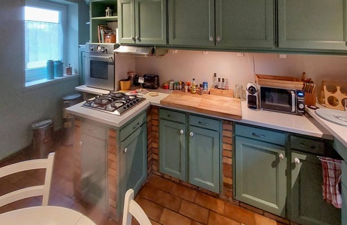 This 17th century farmhouse has been lovingly restored and will delight you with its successful blend of rustic elements and modern comfort. Prepare delicious meals in the inviting country kitchen and enjoy them at the cosy dining table. Relax in the stylishly furnished living room in front of the crackling fireplace or devote yourself to an exciting book in the light-flooded veranda with a view of the garden.