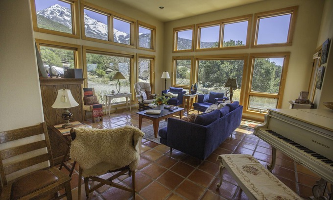 Lovely home with excellent views in a very quiet part of Crestone, CO. Faces majestic mountains to the east and the vast valley to the west. Grand piano, patio/deck, WiFi, very close to hiking trails (walkable), binoculars to see the vast skies at night.