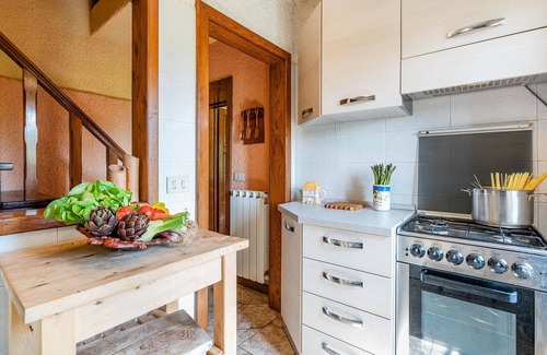 Experience a relaxing stay in this simple but functional holiday home on the edge of the Garfagnana region, near the charming village of Vallico Sopra. The spacious accommodation is ideal for a large family who want to discover rural Italy. The house is furnished in a simple but cosy style. The living areas are furnished with rustic wooden furniture, while light-coloured walls and traditional decorations create a pleasant atmosphere. In the living area, you can enjoy meals together at the large dining table or make yourself comfortable on the seating furniture. The kitchen has all the basic equipment you need for self-catering.