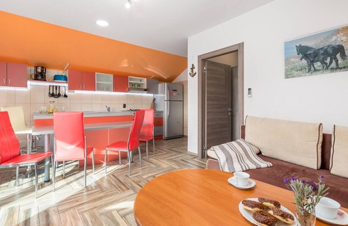 Beautiful and lovingly furnished vacation home on the island of Krk, consisting of two units, which are connected by an external staircase. The bright, airy furnishings and warm colors create a feel-good ambience, which guarantees a relaxing and cozy stay. The minimum ceiling height is 200 cm.