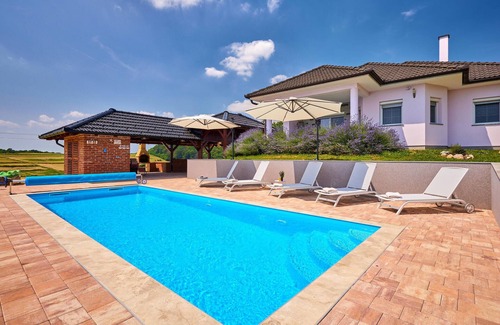 Best-rates for the Lovely home in Krizevci starts from $301 per night with includes Balcony/Terrace, Sports/Activities, Internet, Kitchen, TV, Child Friendly, Laundry, Pet Friendly, Fireplace/Heating, Barbecue/Outdoor Cooking, Pool, Security/Safety, Wellness Facilities, Parking, Private Pool with all other amenities. Perfect for Weddings is committed to ensuring every guest experiences a comfortable and extraordinary stay, whether planning a romantic getaway, a honeymoon, a pet-friendly stay, or celebrating with the entire wedding party.