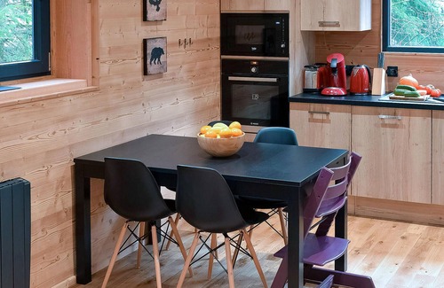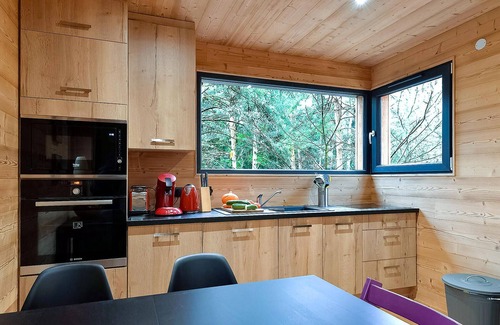 This wooden vacation home is located on the edge of a forest, 16 km from Colmar. The very functional and well-equipped house is air-conditioned and has two terraces, one of which is on the roof. Through the large windows you can see the forest, and at dusk you can watch animals from the bedrooms. The location is perfect for nature lovers, who can look forward to many beautiful excursions and nature experiences nearby. Take advantage of the villages of Trois-Épis (2.5 km) and Labaroche (4.5 km). Golf lovers can pursue their hobby at the Golf d'Ammerschwihr (8 km). Colmar is a romantic destination. In addition to its old town and the Unterlinden Museum, the Krutenau district (La Petite Venise or Little Venice in French) with its half-timbered houses and small, old bridges is also an experience. Visit the picturesque village of Kaysersberg (12 km) and Hohkönigsburg Castle (33 km), as well as an eagle observatory and monkey park in Kintzheim (30 km). Local gastronomic delights include wine and many cheeses, as well as tarte flambée, muenster cheese tart, and blueberry tart.