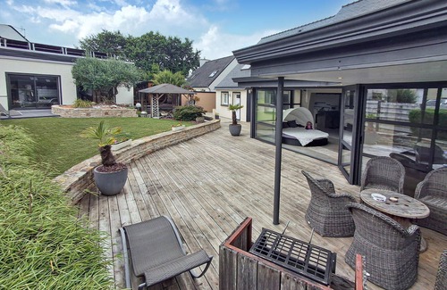 Spend relaxing days in this modern holiday home with sauna and whirlpool.