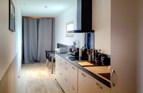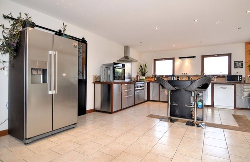 Welcome to the stylish ambience of this modern holiday home, where you can make yourself at home with friends or family in a quiet location. Get cooking together in the open-plan kitchen, gather around the large dining table with a view of the greenery and round off the day with a glass of wine on the comfortable sofa.