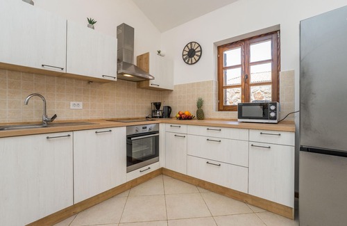 These attractive holiday homes impress with their traditional architecture and stylish furnishings. In addition to the outdoor pool, the houses have spacious terraces and a barbecue area where you can enjoy cosy evenings with friends and family. Diving courses, deep-sea fishing or a boat can be organised with the owner at an additional cost. The small fishing village of Muline is located in a quiet bay on the west side of Ugljan. We recommend boat trips to the nearby islands of Rivanj, Sestrunj, Zverinac, Dugi Otok and I as well as an excursion to Kornati National Park. The holiday accommodations CDU355, CDU357 and CDU358 are in the immediate vicinity and can be booked together by groups of friends. There is a mooring for boats up to 9 metres.
