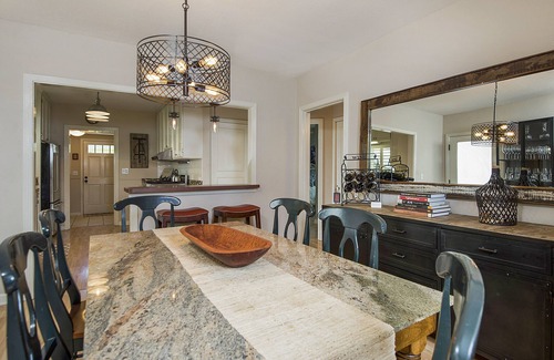 The house features a master bedroom including master bathroom with a brand new Carrera tiled shower and floor, one guest room, guest bathroom, laundry room, updated kitchen including a Viking stove, dining room that seats 6, and a comfortable living room.