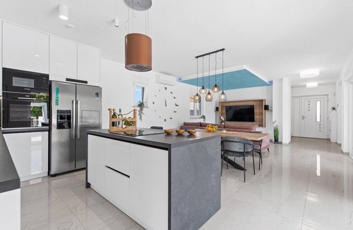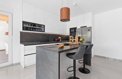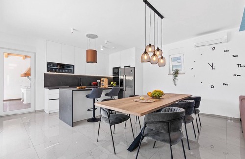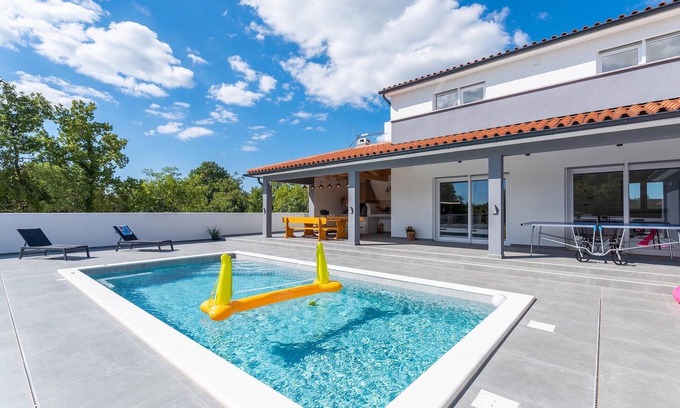 The modern Villa Casa Mara is a fantastic choice for a relaxing holiday. The peaceful location of Villa Casa Mara in central Istria will undoubtedly allow you to unwind from the stresses of everyday life. On hot summer days, the 32 m² pool will keep you cool while you relax on the comfortable sun loungers and work on a nice summer tan. Spend time with your family and friends, enjoy delicious barbecue meals served in a covered dining and barbecue area and let the kids play table tennis or swim in the pool all day. The well-lit and stylishly decorated ground floor is divided into a beautiful living area with fully equipped kitchen, 1 double bedroom with en-suite bathroom with shower and direct access to the pool area and an additional bathroom. Guests have 2 further comfortable bedrooms with en-suite bathrooms on the first floor. Each bedroom has a television and air conditioning. This villa has a lot to offer to make your holiday special. Book Villa Casa Mara so you and your loved ones can enjoy a dream holiday in sunny Istria away from the crowds.The medieval town of Svetvinenat is located in the southern region of the Istrian peninsula. Vineyards and olive groves dominate this region, which has a warm Mediterranean climate and well-preserved historical architecture in towns and surrounding villages. Svetvinenat and the surrounding area are well known for their historical and cultural heritage as well as for their world-class wines and authentic Istrian cuisine. A short drive from Villa Casa Mara will take you to the Brijuni National Park, where you can spend a fantastic day trip with family and friends, and to the town of Pula, home to a Roman amphitheatre. The stunning town of Rovinj and its vibrant city atmosphere is also not far from this villa. So if you want to spend a relaxing time in your private villa but also explore Istria to the fullest, you have chosen just the right place. Istria awaits you!