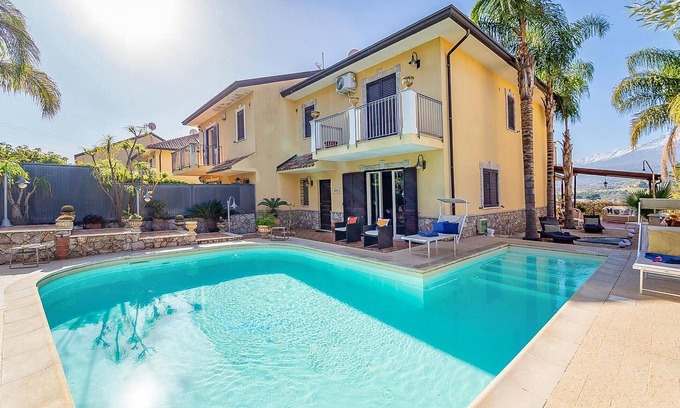 Treat yourself to luxury and a breathtaking view of Mount Etna in this comfortable holiday home with pool.