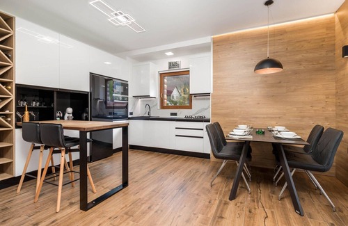 This beautiful wooden house offers you everything you want from a relaxing and luxurious stay. The equipment of the whole house is modern and very comfortable and will let you relax here, together with your extended family and your pet.