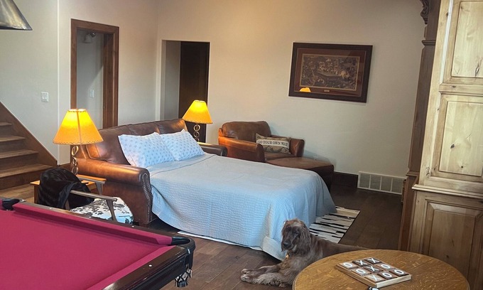 This marvelous suite in Kamas offers a cozy retreat with 2 king beds, 1 queen bed, and a comfortable sofa bed in the living room. The bathroom comes equipped with a hair dryer for your convenience. Whether you're unwinding after a day of exploring or planning your next adventure, this cool space is perfect for guests looking for a welcoming home away from home. Hot tub available and well-mannered children and pets allowed. Feel free to reach out to us during your stay - we're happy to suggest local spots to check out.