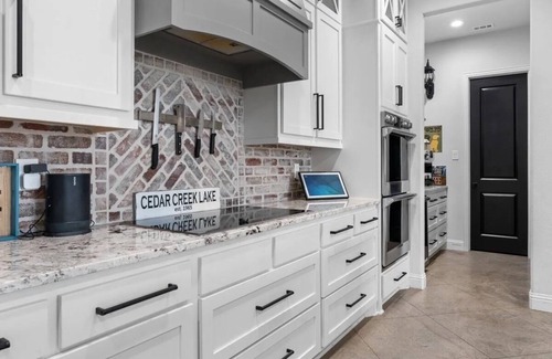 Welcome to The Gator Lodge! Your family will love this 4 bedroom, 3.5 bath house steps away from deep open water on Cedar Creek Lake. Stunning views from the house, covered outdoor living and 2 story boat dock. This amazing house comfortably sleeps 16!