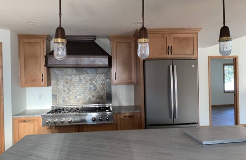 Newly renovated 3000 sq. foot house on the lake. On a private road 2 houses away from a park. Main floor has a mud/laundry room with washer and dryer. Half bath leading into the open concept dining, living and kitchen with a gas fireplace breakfast hearth, with views of the lake. Wifi and cable television.