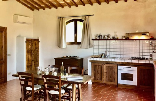Podere Follona is idyllically situated in the countryside between Caldana and Vetulonia. The 360 ° beautiful view is unique. Perfect for a vacation to switch off from everyday life. Since this house is also used privately, each apartment is spacious and furnished with charm.
