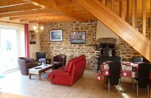 Penty recently renovated, 800 meters from the beach, quiet in the countryside with an enclosed garden with trees and secure for children, garden furniture, barbecue, parasol and deckchairs available. Comfortable house with modern and rustic charm at the same time. Kitchen open to living room with dishwasher, fridge freezer, microwave, ceramic hob and electric oven. Bright living room and living room with wood stove for winter evenings, central heating. Two bedrooms and bathroom with shower.