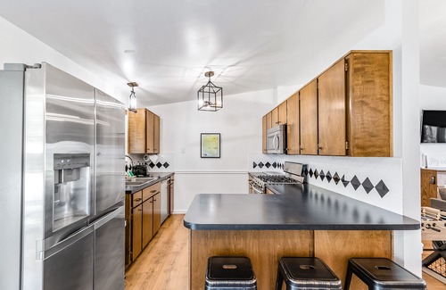 Get away from the hustle and bustle of city life and feel like a Hayden local in no time here at Lake View Getaway. As soon as you arrive, you will fall in love with the lake views that can be seen peeking through the wooded surroundings and the classic cabin vibes that cannot be beat. Inside, there will be plenty of room for the whole gang to spread out and mingle in the open layout of the dining room, living area, and gourmet kitchen. Whip up a pot of coffee and tasty breakfast using the modern appliance, gas range, and ample cookware before heading out for a full day of adventure. When you return to home base, the deck will be just the place to kick back and watch the sun go down with a favorite drink in hand. Entertainment will be abundant as well with the flatscreen TV for streaming your favorite channels, free WiFi, and foosball table in the living room.