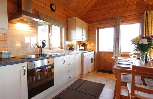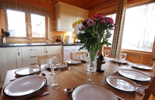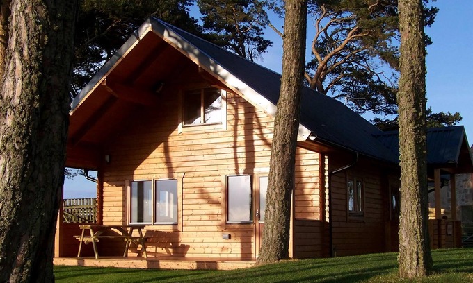 Bedroom 3: 2 x Single (3ft) Beds, Freeview TV. Electric heating and electricity by £1 coin meter (initial £10 included). Bed linen, towels and Wi-Fi included. Travel cot and highchair. Large, lawned garden with sitting-out area, garden furniture and barbecue. Private parking for 3 cars. No smoking.. Self-catering Log Cabin near to Tain and Balintore in the Scottish Highlands. This Scandinavian, dog friendly log cabin sleeps up to 6 guests.