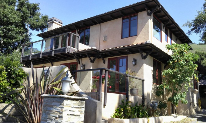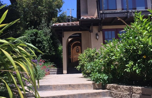 Close to Quail Lodge and Carmel Valley Ranch this Mediterranean home is close to the mouth of Carmel Valley, enabling you to enjoy the sunny microclimate and all that downtown Carmel and the Pebble Beach community have to offer. The home is designed to encourage indoor/outdoor living. The main living room and adjacent dining room open up onto a beautiful patio where a fountain and flowers set the scene for relaxed mornings and afternoons. The kitchen opens onto a terraced backyard with a built-in fireplace, grill and kitchen garden - perfect for evening gatherings. The kitchen has top appliances and is expansive with plenty of storage. Mountain views beckon from both the master bedroom suite (king bed) and the additional guest room (queen bed) on the second floor. Downstairs, two smaller bedrooms (twin beds) share a full bath. A powder room is conveniently located near the living room. This home truly offers the best of both worlds - sunshine with Carmel convenience.