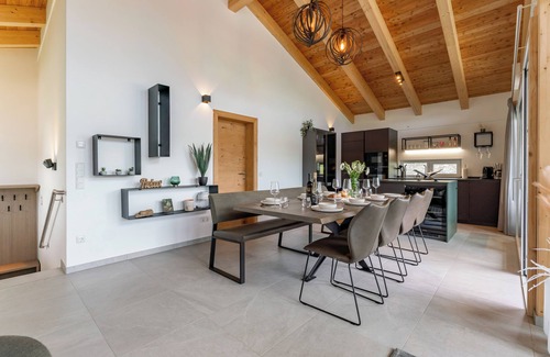 This luxurious and spacious holiday home is on the ski slope of the Grebenzen ski area in Sankt Lambrecht—a cozy village with atmospheric restaurants, lovely shops, and a well-stocked supermarket. Upstairs, there is a covered balcony with fantastic views. There is room for two cars under the carport, with extra storage space for skis or bicycles. The outdoor terrace is ideal for long summer evenings overlooking the setting sun