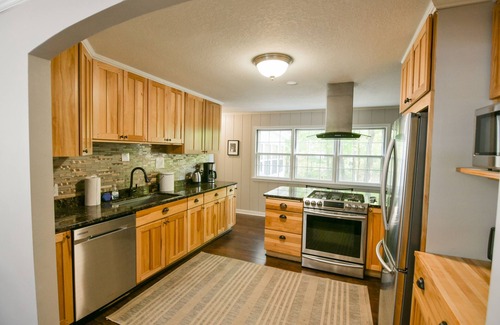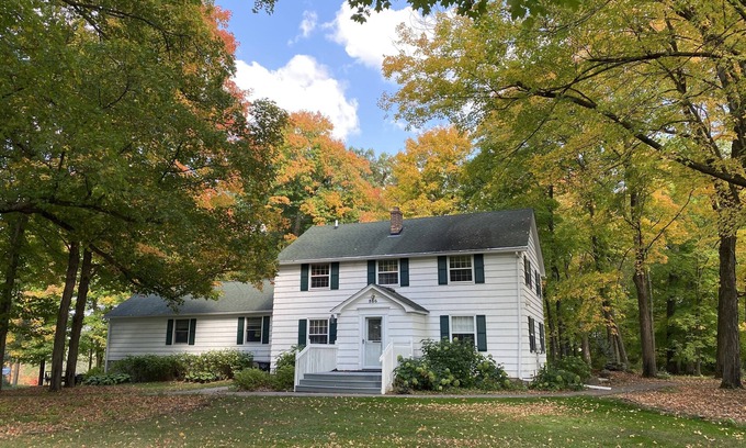 "Maple House" has plenty of comfortable upscale space for gatherings and also for quiet time away from the group. We offer 1 large bedroom with a queen bed on the main level which has it's own bathroom, a 2nd main floor bedroom with a queen + twin, and 4 upstairs bedrooms: three with queen beds and one with 2 twin beds. Other sleeping options include a large sectional couch, an outdoor style couch that would sleep one person (except winter) on the 3-season porch, and a queen double height air mattress with built in pump. In addition to the master bath, there is a small bathroom with a shower on main level and a bathroom with tub and shower upstairs, plus a nice laundry room upstairs for your use. You will enjoy an updated well-equipped kitchen, large dining room table, huge comfy "great room" with large curved screen TV with cable and high speed internet, a 3-season porch, and a patio with table & chairs, gas grill, and fire pit. We provide wood and propane. We provide spices & cooking oil, coffee beans & grinder, tea, a few pantry items like sugar and flour, and a gift of local pure maple syrup made by your hosts!