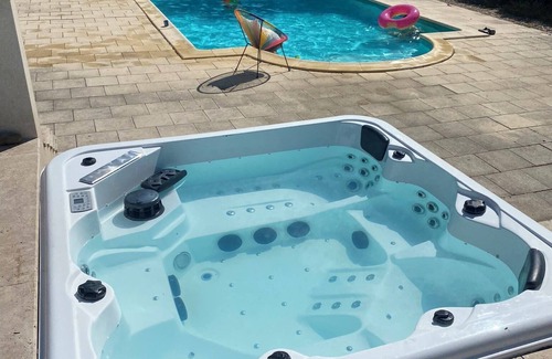 Outside, you benefit from a large, covered terrace for outdoor dining, a terrace that continues towards a brazier, the jacuzzi and the swimming pool.