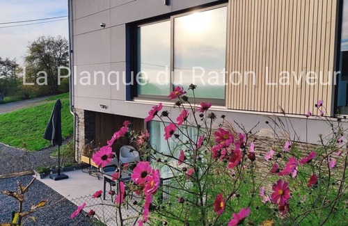 "La planque du raton laveur" is a studio in Lierneux for 2 people, superbly equipped (bathroom, small kitchen, dining area, etc.), located at the top of a hill and at the edge of the woods, with a breathtaking view over the valley.