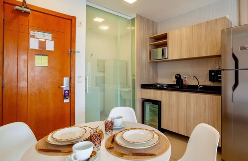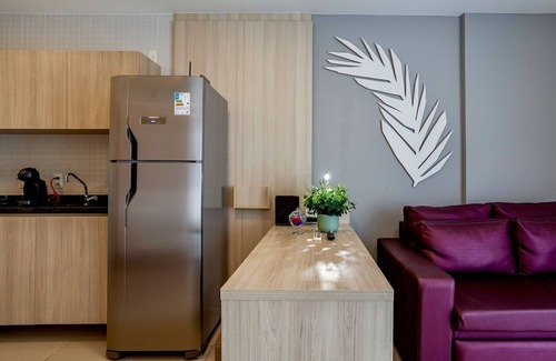 Incredible apartment, superbly decorated with a very comfortable sofa bed for watching a movie or reading a book, bedroom with a King Size double bed. It comes with a workstation and air conditioning. The apartment is situated in a centrally located hotel in Salvador. Our kitchen is compact and equipped with all the necessary utensils for longer stays.