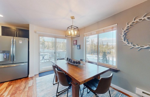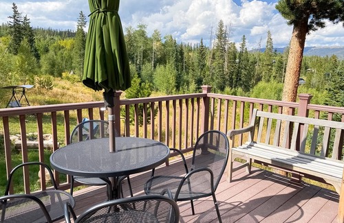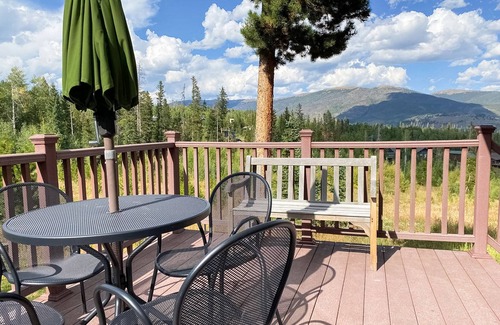 With burnished wood accents, lots of personal touches, and stunning mountain and lake views from practically every window, this spacious three-bedroom, three-bath townhome is the perfect place to enjoy a fun ski-cation with friends and family. After a day at Keystone Resorts, a convenient 10-minute drive away, come home to kick up a crackling fire in the handsome wood-burning fireplace. You'll love watching your favorite movies and shows on the wall-mounted flatscreen TV and the full kitchen as all the appliances and counter space the group chef will need to prepare world-class meals for everyone to enjoy at the dining table with seating for six. Off the dining room, the deck is furnished with a table/chair set and a private gas grill, ideal for hosting those fun summer barbecues. When evening falls, you'll have three well-appointed bedrooms upstairs, the primary room with an en-suite bath. And with numerous National Forest hiking trails right behind the property, you'll appreciate a nice and luxurious sleep before a long day of outdoor adventure.