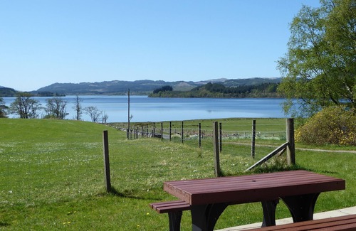 Outside, with amazing view over Loch Awe, there is a picnic table and bench.