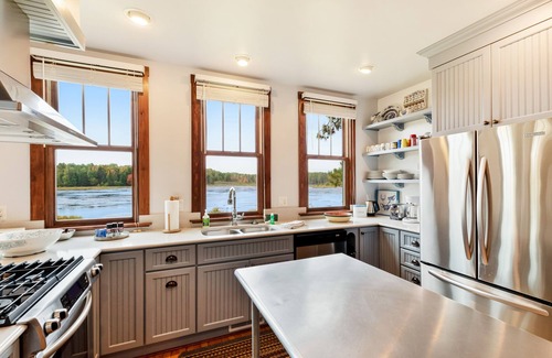 The White House, a restored country home, sits on a remarkable 160 acres of private land in the Northwoods of Presque Isle. The updated vintage interior blends old-fashioned charm with plenty of modern conveniences, and the view of the neighboring pond will make your morning coffee extra enjoyable. This home is ideal for reunions, retreats, and relaxing vacations. The pond offers fantastic opportunities for wildlife spotting, especially otters, beavers, and waterfowl, as well as sunset gazing.